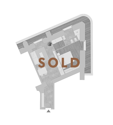 The entrance opens to the bright living in open space with open kitchen, laundry room and bathroom. The sleeping area consisting of a master bedroom with walk-in closet.